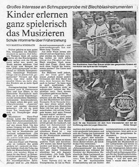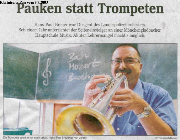 Hauptamtlicher Trompetenlehrer und Leiter des Blasorchesters der Rheinischen Musikschule der Stadt Köln